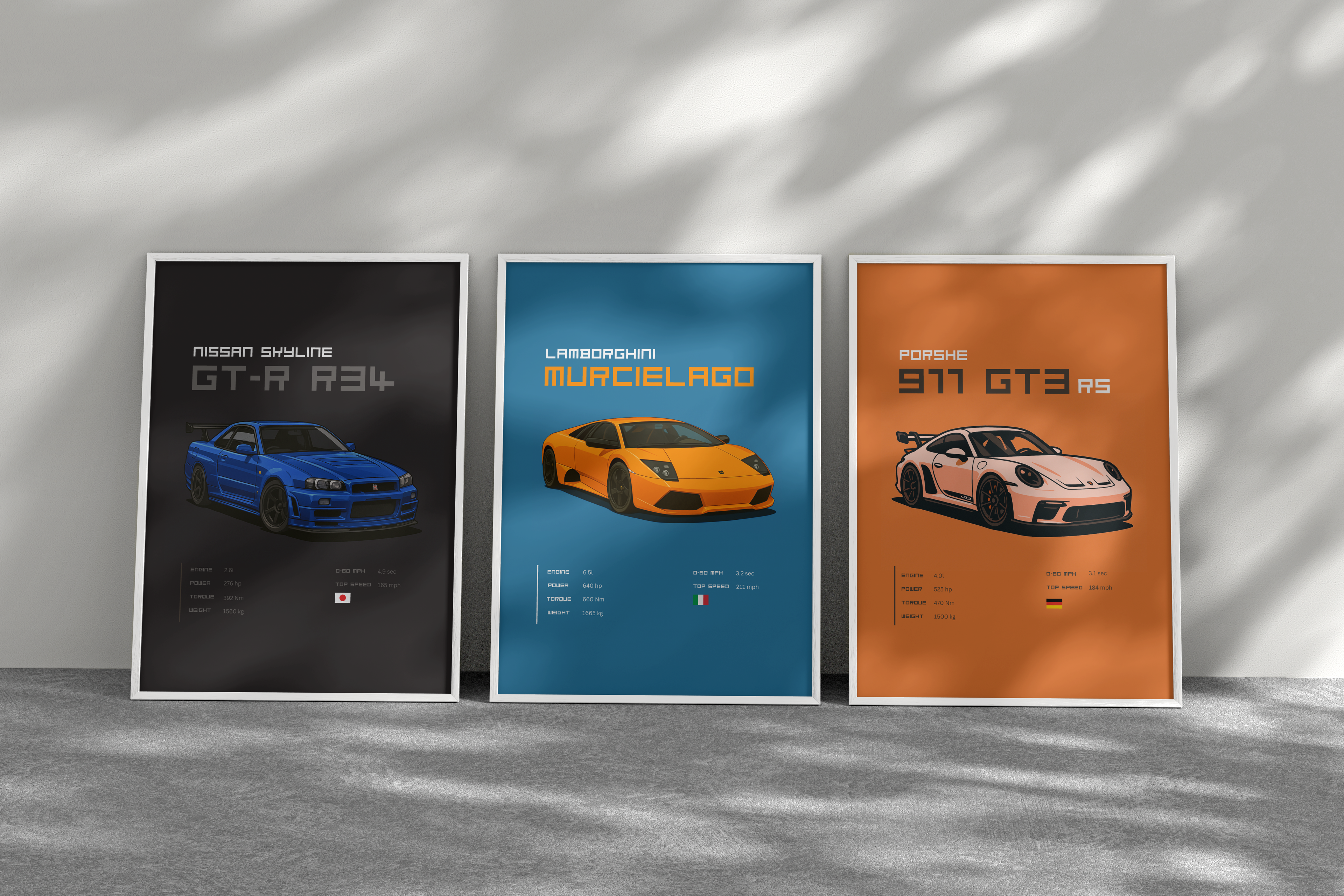 Stylised Lamborghini Murciélago Poster printed on 180 gsm paper. A piece of automotive wall art that captures the raw power and design of this Italian icon. Perfect for car lovers and collectors alike. Avalible in A3 & A2 size.