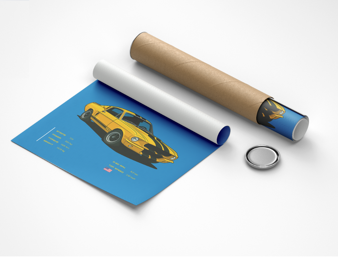 Stylised 1967 Ford Mustang Shelby GT500 poster printed on premium enhanced matte paper. A striking, high-quality piece celebrating classic American muscle. Wall art – no frame.